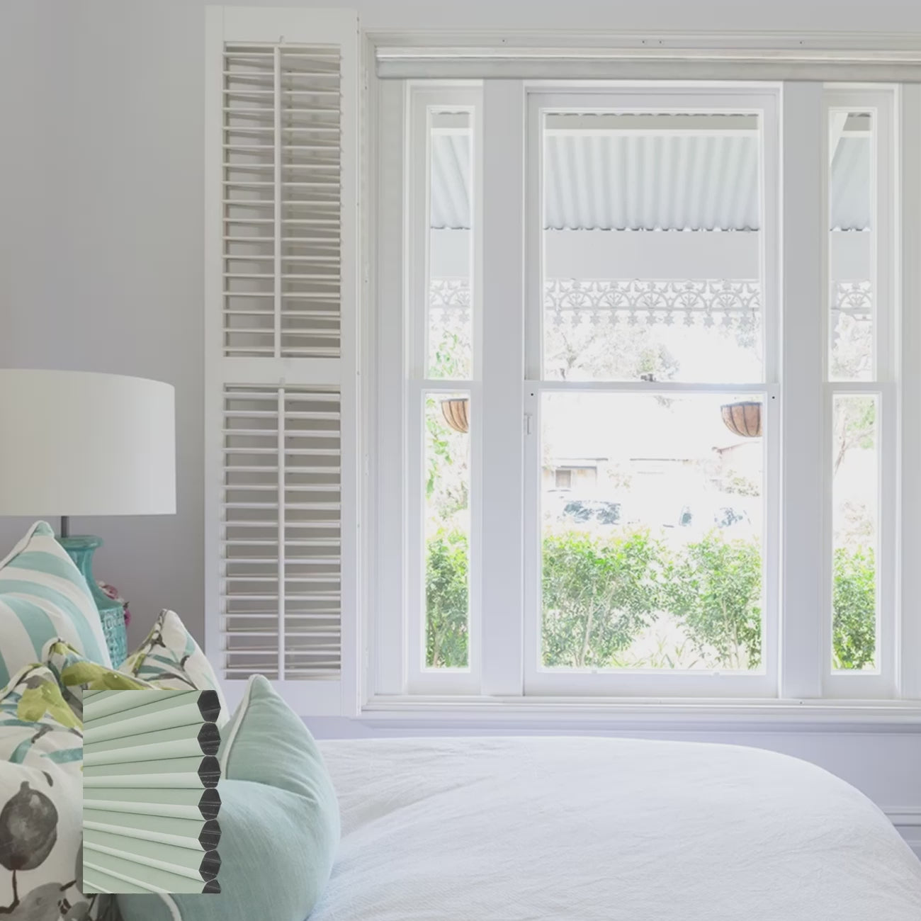 水綠雙循環上下開合遮光蜂巢簾 (Water Green)